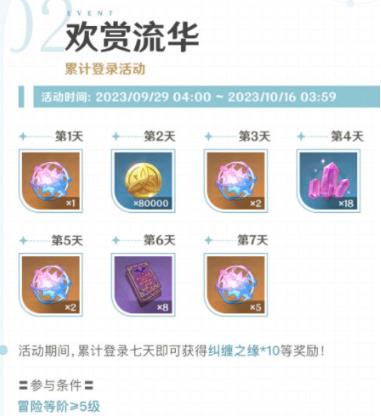 原神4.1欢赏流华活动如何参与?欢赏流华活动相信很多人对里面的奖励都垂涎欲滴把,这个活动的上线时间在本月29-10.16时间段,是要有一定的条件的冒险等级不低于五级,对于天天玩的小伙伴来说肯定是没有问题的,前面七天登录都有可以获得一些奖励道具,第一天可以拿到一个纠缠之缘,随着天数的不断叠加奖励也是会越来越好的,下面小编就给大家解答原神4.1欢赏流华活动玩法分享,有需要的小伙伴一起来看看吧,希望对你们有所帮助!