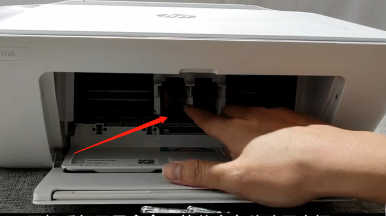 将墨盒对准安装入口,轻轻往里推,直到卡扣卡住。