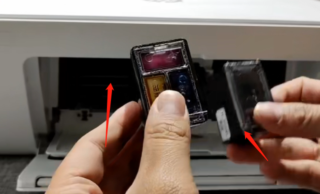 2、安装墨盒的顺序是左彩右黑,顺序不能弄错,安装的时候需要注意哦。