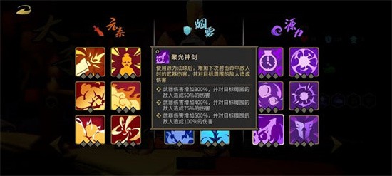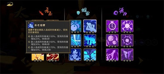 3.混子流顾名思义没有什么输出,推荐在组队并且对内有输出手玩,混子流金爵要求点满3级衰老烟雾,其余的可以优先选择源力球数量 控制时间。因为不需要输出所以武器没有太大要求,补充一下队友没有的元素就行。