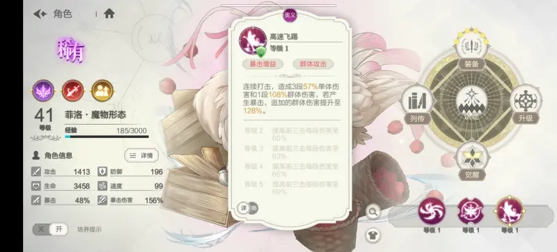 鸟菲拥有超高的暴击(我溢出了点,失误)与群伤,与ssr菲相比只强不弱。