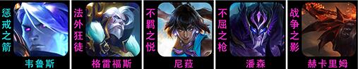1、阵容搭配韦鲁斯+格雷福斯+尼菈+潘森+赫卡里姆