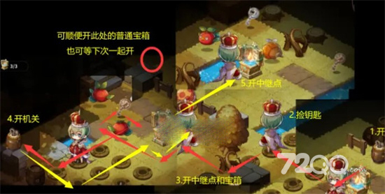 2.按红色路线返程,开启普通宝箱