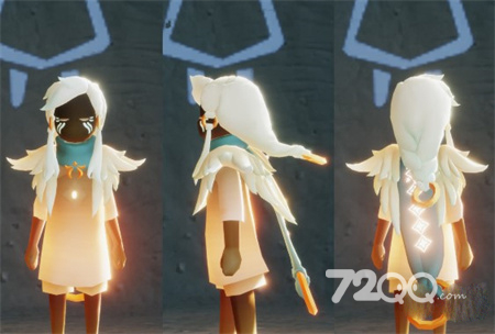 3.青色羽毛披肩斗篷:造型独特的一款斗篷,肩膀处像一对小翅膀,后面有一条青色丝带,尾端也有金色圆环。