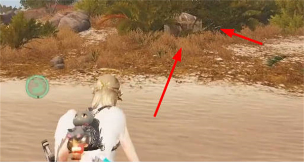 1:我们首先需要驾驶探险船来到我们炙石火山区域这里,我们在海边沙滩上可以看到一个宝箱;