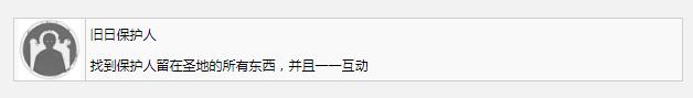 获得方法:找到保护人留在圣地的所有东西,并且一一互动