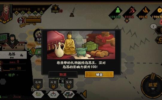 6礼物其实只有觐见城市的时候才有用,必须拉满,那么赶路的时候,礼物只需1格,而粮草,赶路的时候是必须拉满,如果需要觐见,一般2格-3格足够了。