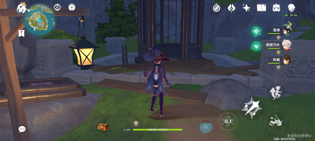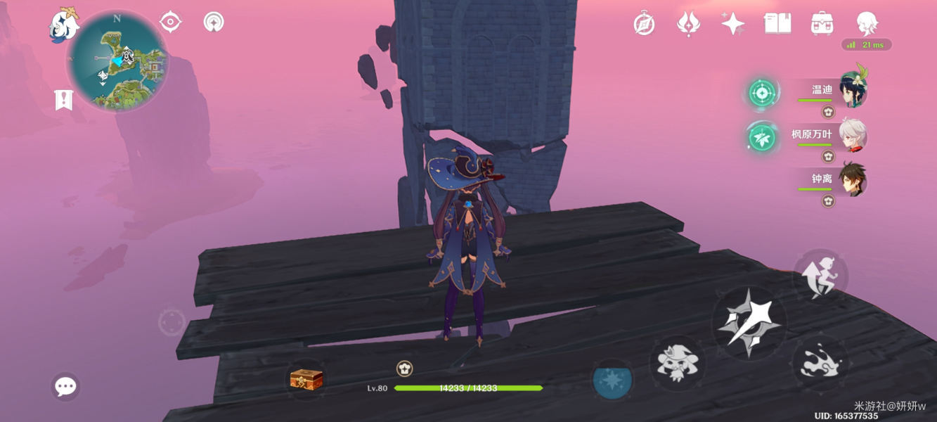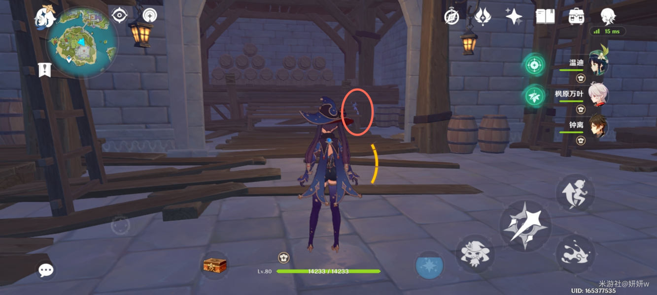 然后往大厅外面走,沿着小路一直往前,直到这里的木板处,然后直接往前跳,会有风场出来,送我们到对面的塔楼内