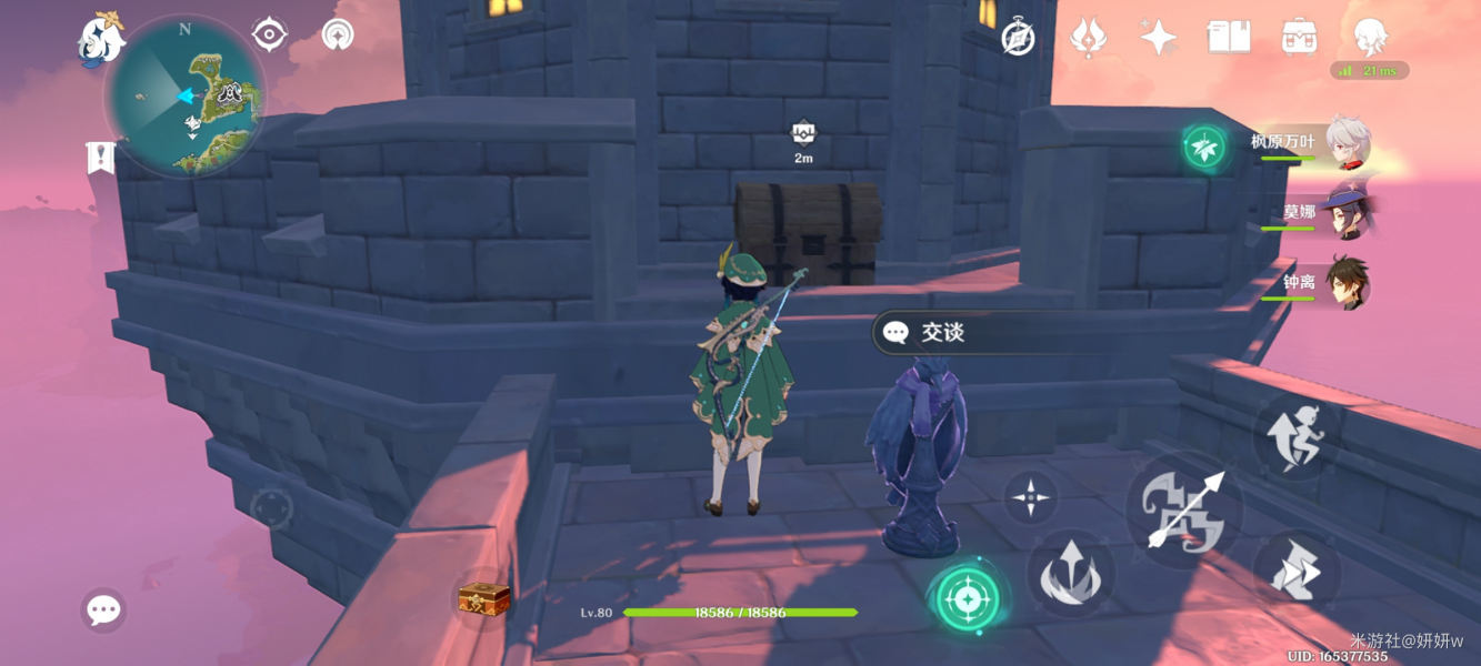 最后顺着风场完成挑战,回来再和飞行大师对话,即可获得一个普通宝箱