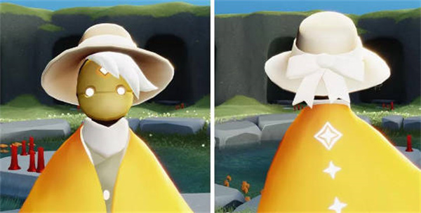 3:第二个就是蝴蝶结遮阳帽,这个遮阳帽整体是米黄色的,上面还有蝴蝶结的样式,我们可以在遇境中进行兑换获得的;
