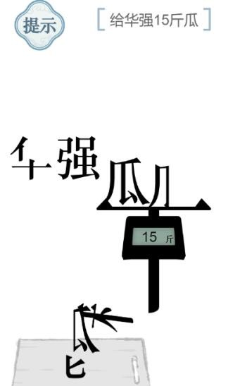 以上就是文字的力量第53关给华强15斤瓜攻略图文详解的全部内容,更多文字的力量相关攻略,敬请关注笑话控。