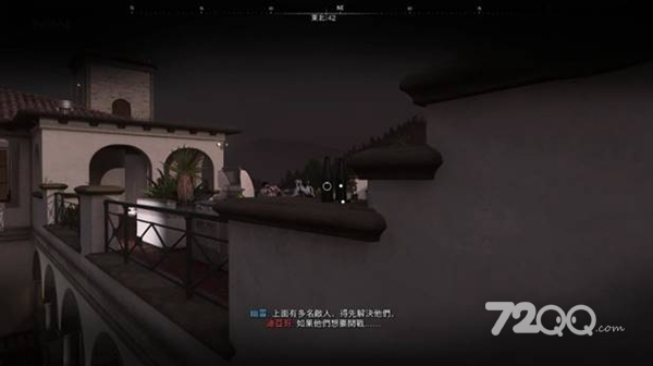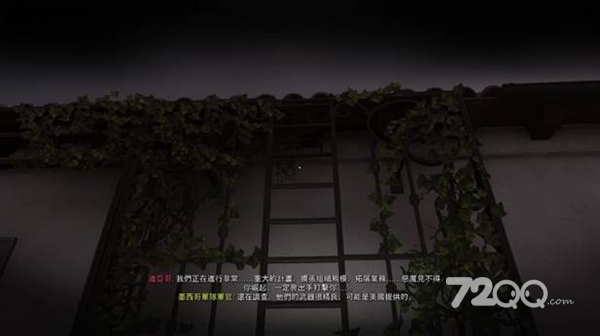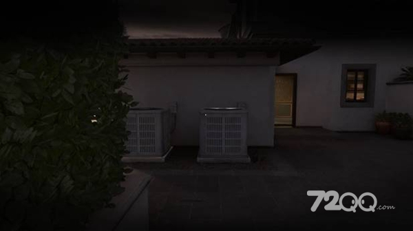 去到餐厅后面的空地,等守卫(其中一个是友军亚历山大,看清楚不然白等)转开视野时,利用空调机爬上二楼。