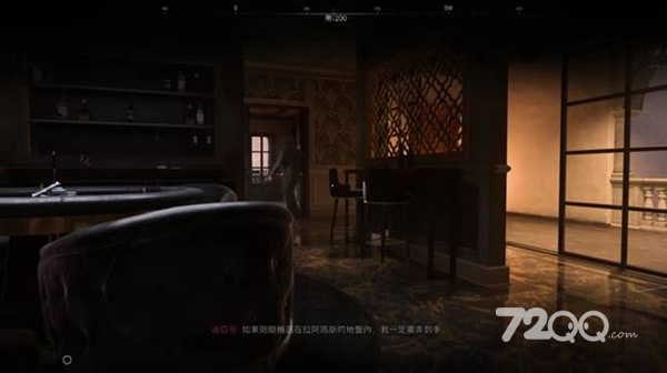 趁机爬到吧台后,等左边的守卫视线转移后,走到底爬梯子上四楼,任务完成。