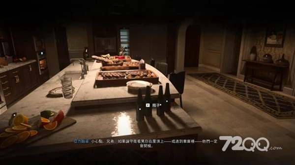 走廊有个守卫,朝厨房扔瓶子,引开后去走廊,顺便补充酒瓶。