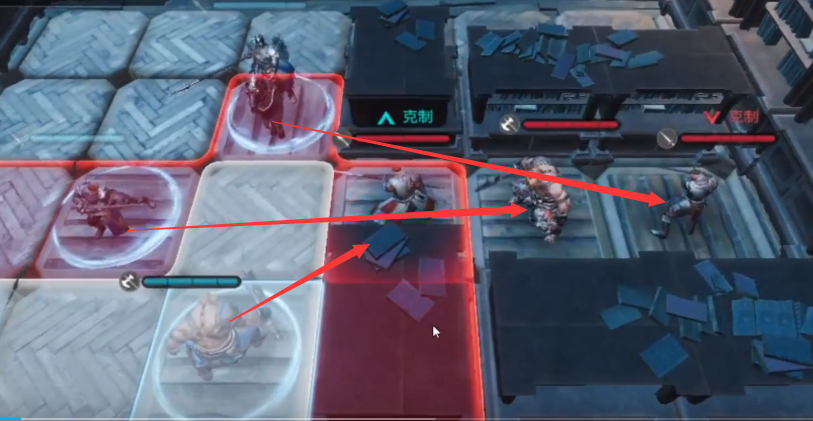 第一步:操控斗士,攻击敌方枪兵。