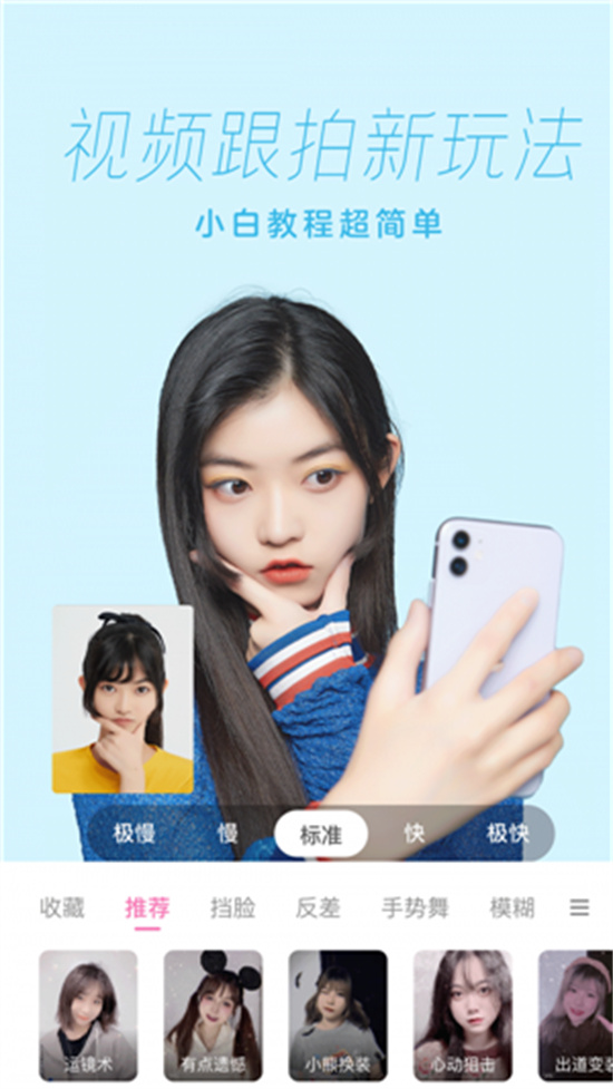 首先我们准备好这张照片和自己需要的底色,点击打开一甜相机,在底部的功能区向左滑动。
