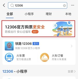 1、打开支付宝app,在上方搜索框内搜索12306