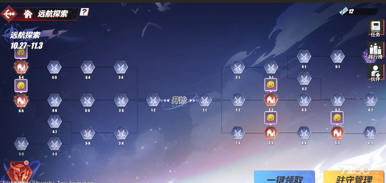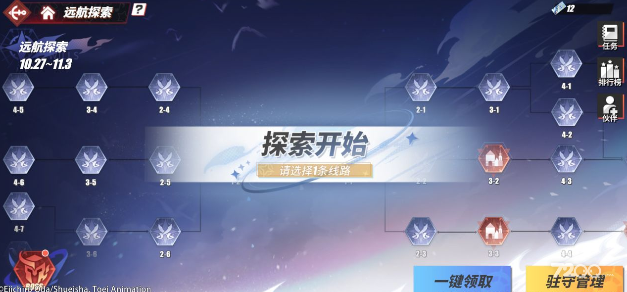 -船长们可以消耗远航券,选择不同的路线挑战关卡,不同路线的关卡有不同的关卡效果。