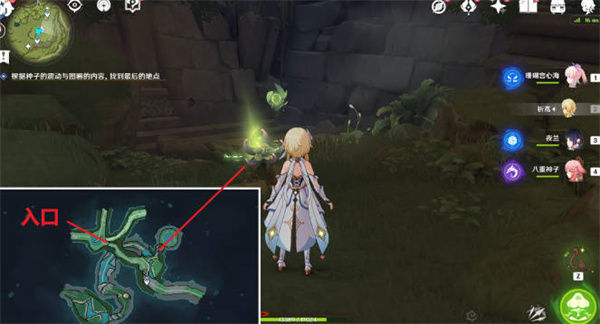 8:最后就是激活草元素方碑,降低水位,然后我们进入之后和小精灵进行对话,这里任务就完成了。