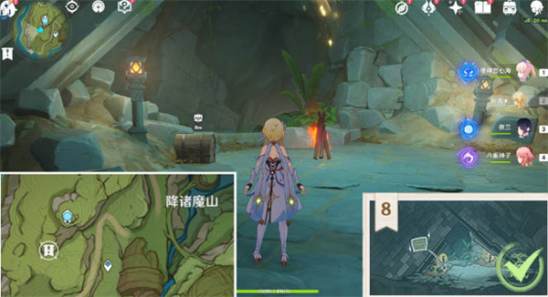5:五号宝箱在第一个遇到的神像这里,向北进入洞穴中,在屋子的正下方就可以看到了;