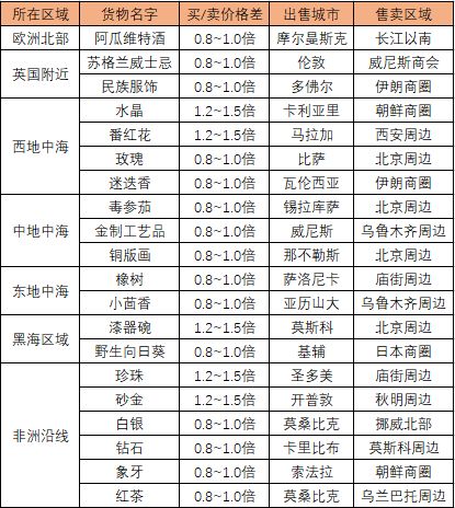 2. 核心路线返程:从欧洲出发,几个重要的区域和城市收集,然后沿着非洲航线,收集非洲的钻石、象牙、珍珠等,到中国沿海区域售卖,也可以获得相当多的利润。