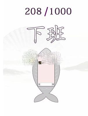 1、【摸鱼】关卡需要成功下班,首先点击鱼一次,右上角进度增加1,一共需要达到1000。直到摸鱼+1000进度完成。