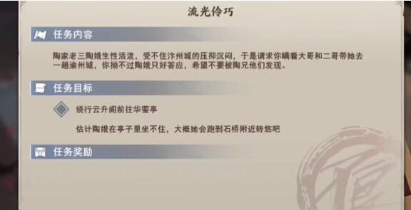 6、最后我们回到汴州,找到最初的陶娥就能完成流光伶巧轶事任务了。