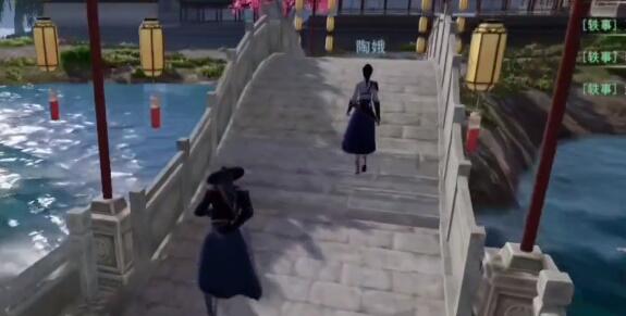 3、之后我们需要来到渝州城的石桥这里,再次一找到陶娥,后面跟着她移动即可。