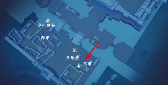 2、我们可以在汴州东市下图位置,找到陶娥,和她对话就能领取【流光伶巧】轶事任务。