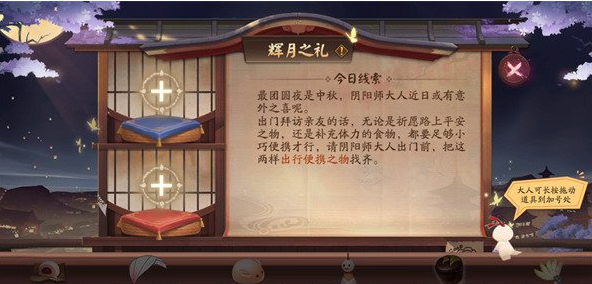 「辉月之礼」包含8种中秋聚福物品,如果提供了正确的「辉月之礼」,则会获得更多的「福气」,每日首次提供正确物品还可获得额外奖励。