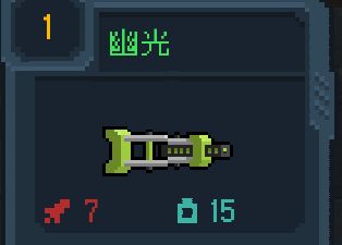 幽光——观赏武器,有待增强,优点是蓝耗不高,能量不够用时可以用它换掉一把高蓝耗武器。