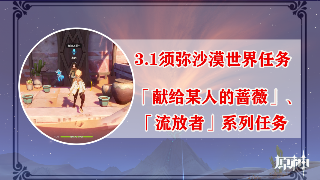 本篇文章将给大家带来3.1版本须弥沙漠地区的双世界任务「流放者」、「献给某人的蔷薇」。