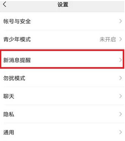 在设置界面中,点击新消息提醒选项。