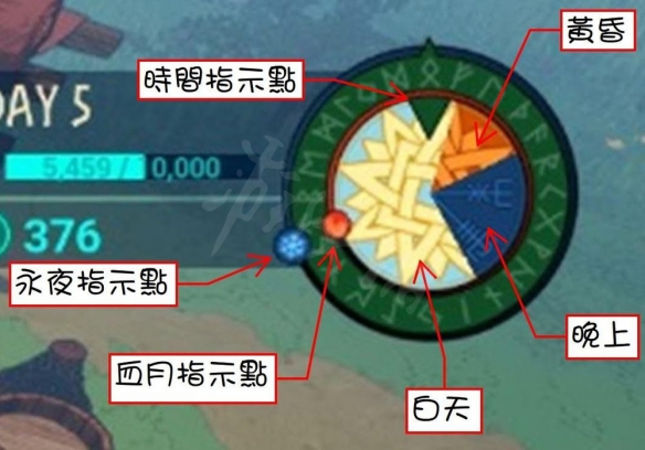 每4天会有一次的血月,就是看时间区块外的血月指示点的时间轴是否走满一圈。