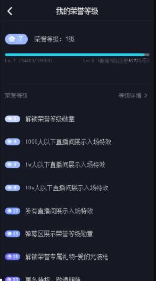 抖音里面的荣誉等级是根据自己消费的抖音币升级的,随着等级的提升,你会获得抖音助手赐予你的独特光环。