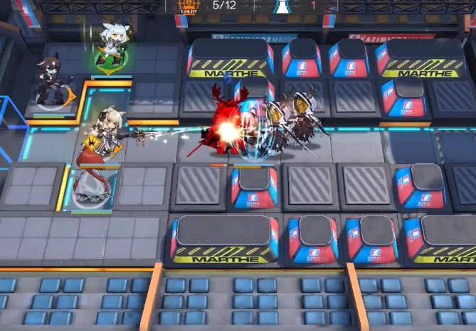 最后是锤子双子,重复之前的操作,在接近耀光之前,空投砾拦住来吸收其攻击,记得焰尾要开技能,白面鸮此时技能回转还没好,不过也不重要了,一般来说不需要了。一般来说耀光精二一级练度就够用,如果不够用的话,提一下练度就好,一技能还是很方便和解手的。