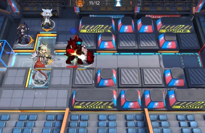 等BOSS接近的时候,所有干员同时开技能,也就是白面鸮开技能,然后焰尾开技能,同时空降砾辅助输出。把弓箭手BOSS干掉后,撤掉砾,等烛骑士薇薇安娜过来。