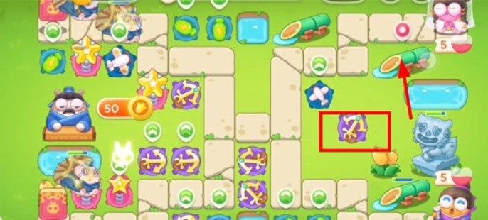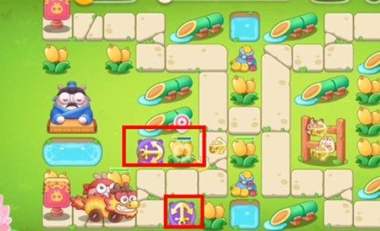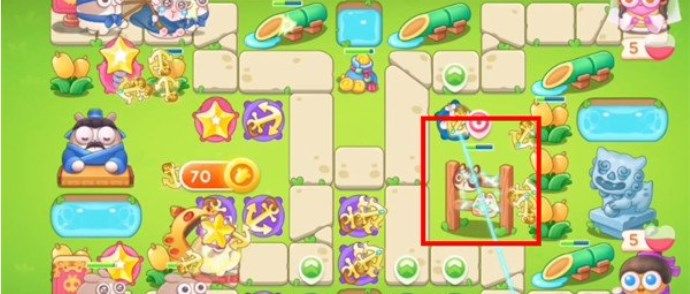 9.第八波在竹子的位置建造船锚,锁定石狮子,这一波可以将场上的道具全部打掉;
