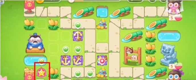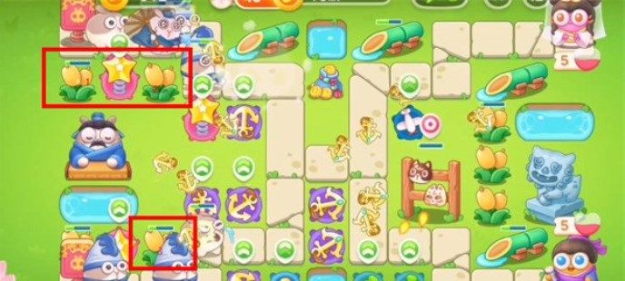 6.第五波锁定上方的植物,并将星星塔升级,这一波道具拆除顺序如下图