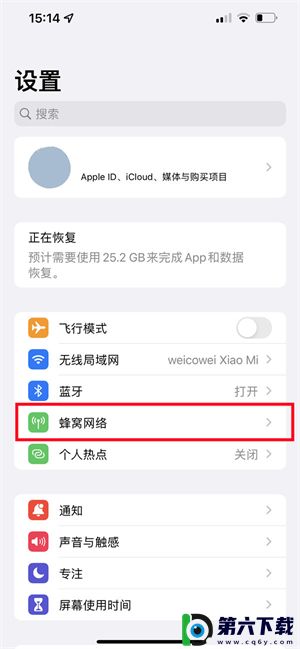 1、在手机设置中选择【蜂窝网络】。
