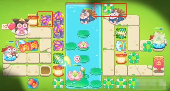 9、第九波中间荷叶增加一个烟花塔,左上方加两个烟花塔直接满级。