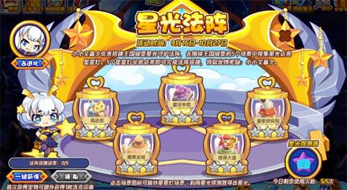 1.活动界面有五个星光法阵,每个法阵需要前往对应的地图收集三颗星星,完毕即可点亮该法阵。