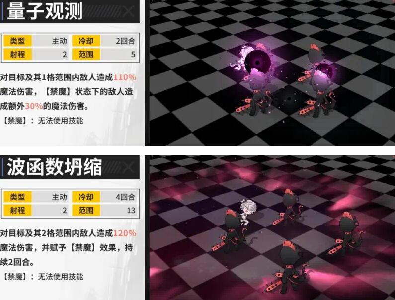 两个技能都是aoe技能,并且自身技能就可以配合,2技能给敌人挂上沉默,1技能对沉默的敌人增伤