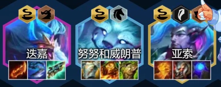 阵容主要考虑迭嘉的输出装,之后考虑努努的坦度装备,前排努努坦度装备的好坏更是决定,阵容能走多远。