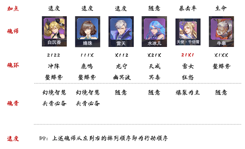 ①白沉香:开局第1次行动直接用普攻给全队推条,然后第2次行动时使用4-2技能【燕戏百花】给全队续命