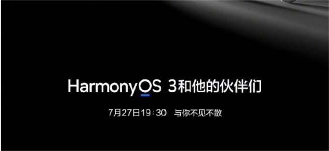 7月27日19:30 ,HarmonyOS 3及华为全场景新品发布会,HarmonyOS 3和他的伙伴们,邀你一同开启智慧新篇章。
