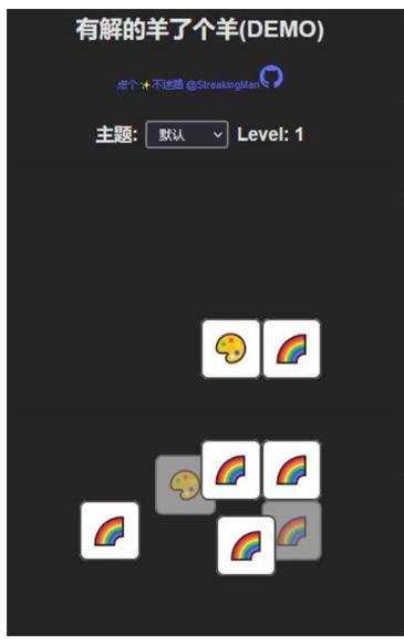1、玩法和羊了个羊玩法是一样的,找到三个图案直接放下面消除;