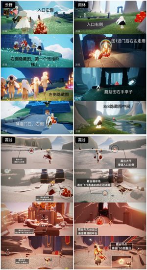今日大蜡烛分布在云野、雨林、霞谷,以下是位置参考: