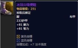 不像上面的靴子,这件装备包含了一个红槽一个蓝槽和一个黄槽,提供了+9法强的插槽奖励。毫无疑问红槽要插23法强宝石,那么问题就是蓝槽和黄槽要插什么宝石。让我们来看看牺牲和不牺牲插槽奖励的插法有何不同: