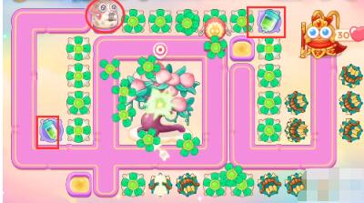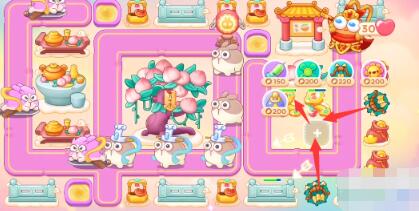 3、附近所有障碍物清除,放置多重箭和风扇,遇到滑板兔的时候注意锁定。
